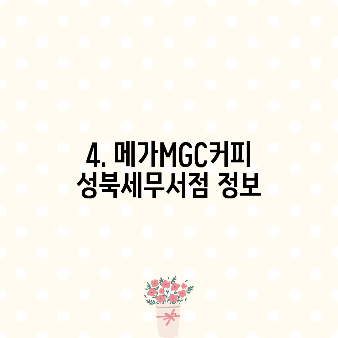 4. 메가MGC커피 성북세무서점 운영시간 및 위치, 전화번호 확인하세요!